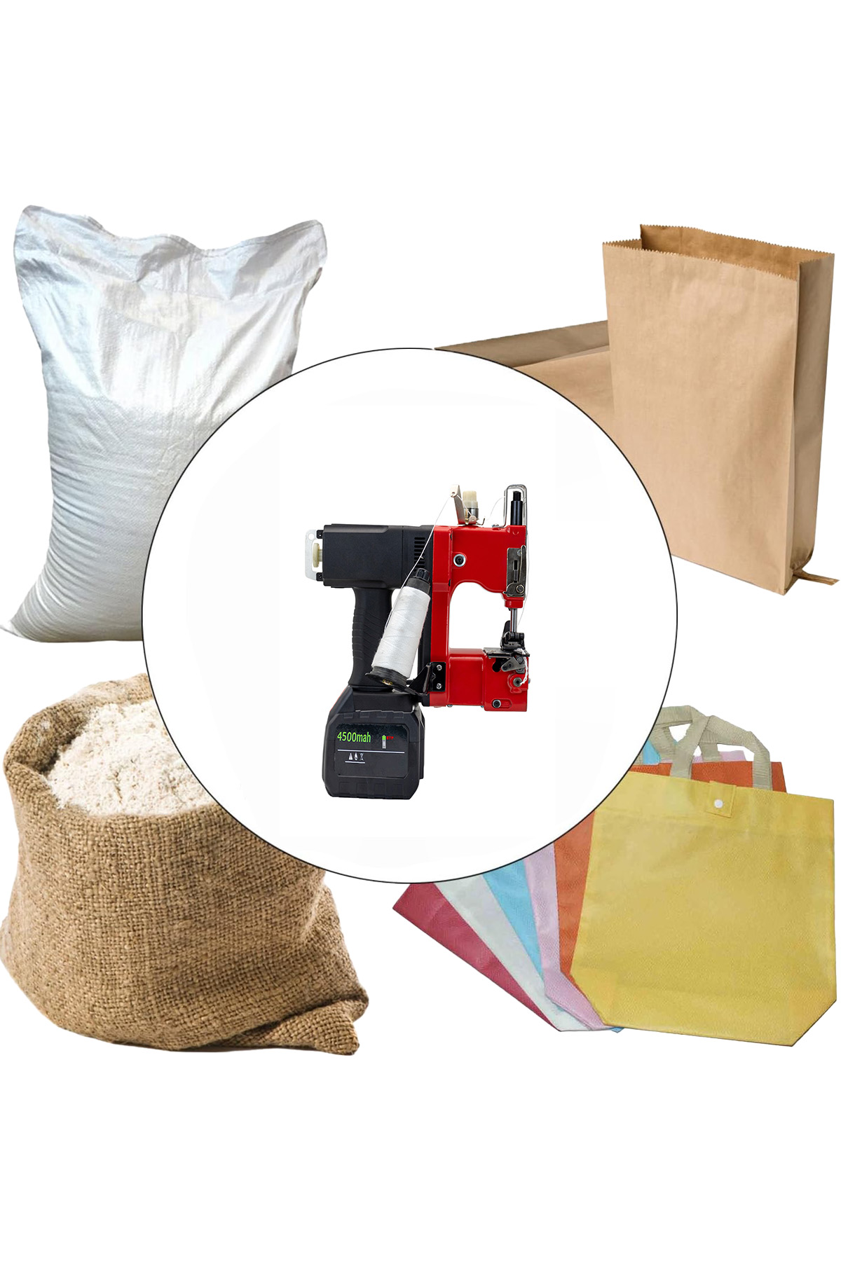 Sağlam yapısı, taşınabilir tasarımı ve hızlı dikiş performansıyla; çuval, torba, yem çuvalı, un torbası, çimento torbası gibi ürünlerin ağzını pratik şekilde dikmek için idealdir.